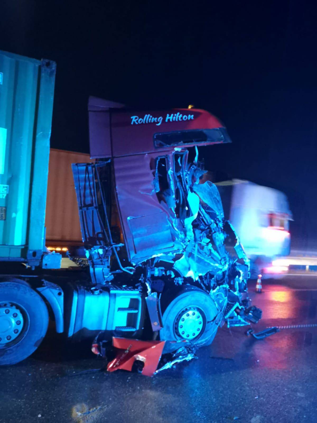 Do zdarzenia doszło około 1.30 w nocy na 337,6 kilometrze autostrady A1 w kierunku Katowic, na wysokości zjazdu, w który skręcić chciał zastęp. Jak przekazano, było to około dwóch kilometrów od miejsca, gdzie strażacy wcześniej prowadzili działania przy innej kolizji.