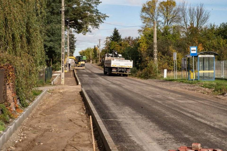 Dobre wiadomości przyszły w lutym tego roku - samorząd otrzymał z Urzędu Marszałkowskiego Województwa Łódzkiego 12 mln zł unijnego dofinansowania. Dla Ujazdu była to rekordowa dotacja dla jednej inwestycji. W wyniku przetargu cena realizacji robót okazała się znacznie niższa i ostatecznie wyniosła 7,2 mln zł, a wkład UE - 6,1 mln zł. Rekordowe jest też tempo robót - zgodnie z umową drogowcy mają czas do sierpnia przyszłego roku, ale wszystko wskazuje, że fizyczne prace zakończą się w lutym 2026 roku.