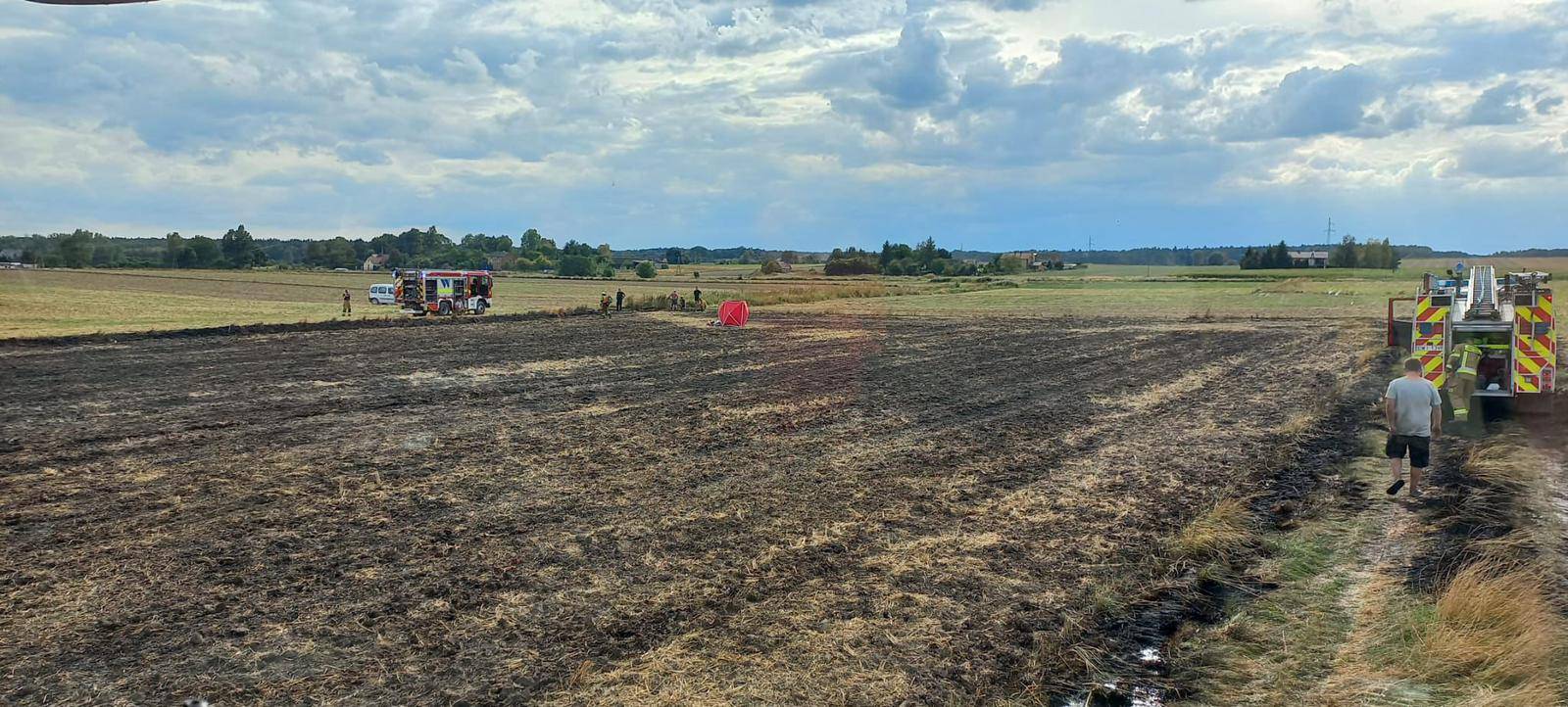 Do tragicznego w skutkach pożaru doszło we wtorek na jednym z pól w okolicach miejscowości Ożarów w powiecie wieluńskim. O godzinie 15.04 strażacy zostali wezwani do pożaru ścierniska. Ogień objął obszar około 4000 metrów kwadratowych.