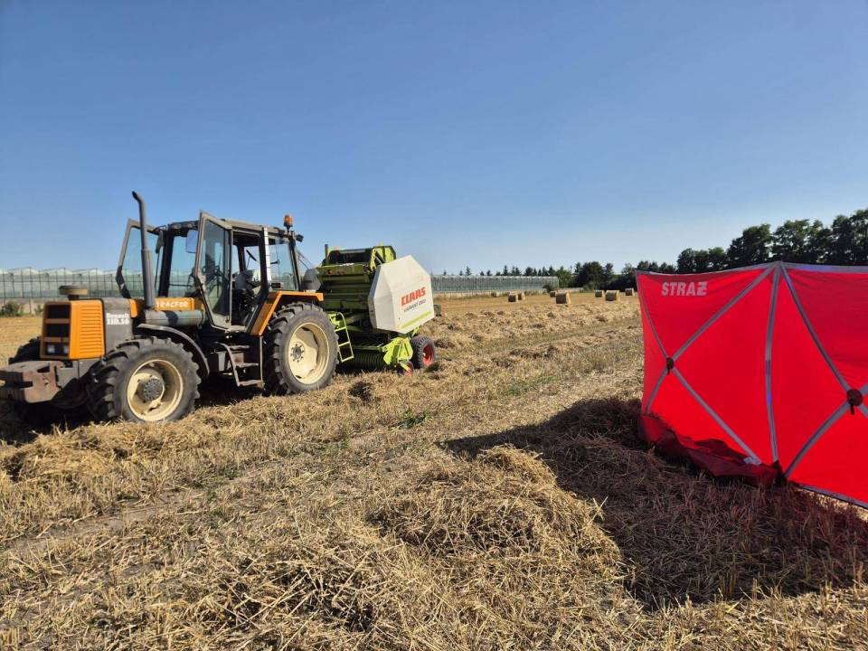 Do tragicznego wypadku doszło dziś około godziny 14:34 w miejscowości Mroczki Małe. 26-letni mężczyzna został wciągnięty przez prasę rolniczą podczas prac przy produkcji bel słomy. Pomimo natychmiastowej pomocy i przeprowadzonej reanimacji, życia poszkodowanego nie udało się uratować.