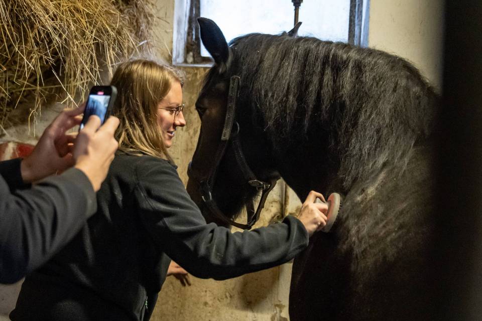 W stadninie znajduje się około 50 koni, przeważają klacze, zarówno dorosłe, jak i młode, a ogiery są w tej chwili tylko dwa. Każdy koń ma swoje imię i codziennie jest głaskany, czesany i przytulany przez panią Katarzynę Marcińczak.